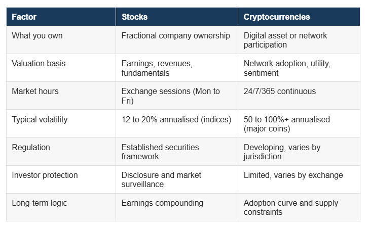 Understanding the Key Differences Between Crypto and Stocks Before Starting Your Investment Journey